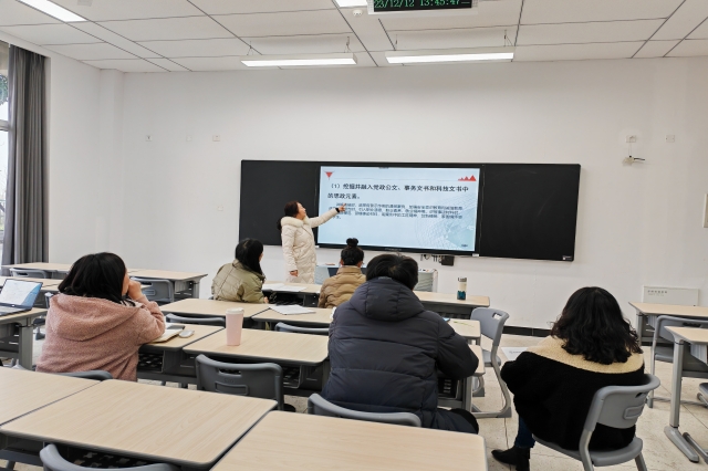 2023年12月12日下午,数学和语文教研室全体老师在思学楼112展开了第15周教研活动,教研活动由蔡云老师主持,主题是讨论如何在应用文写作课程中融入课程思政,实现思政育人。