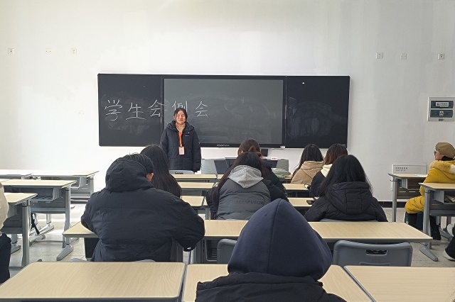 会议伊始,杨闪悦提到本次例会是这学期最后一次例会,她提醒同学们临近期末考试,注意诚信考试、不要挂科,如果是学生会干事或班级干部挂科会被辞退;前不久因下雪道路湿滑,提醒同学们注意安全,要有好身体才能更好地学习。