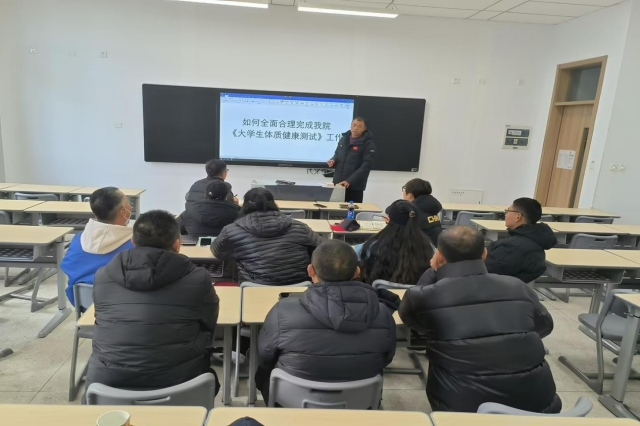 2023年12月26日下午,体育教研室在博学楼105开展如何全面合理完成我校《大学生体质健康测试》工作的研讨会,会议由李庆路老师主持。