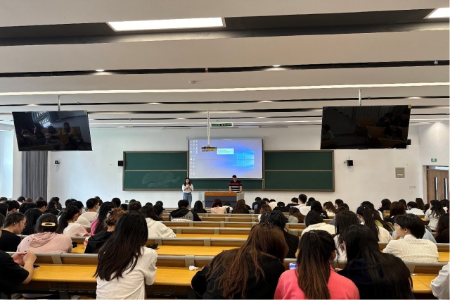 同花顺的校企合作部总监王鹏为我系师生详细介绍了该公司的发展状况、产业战略布局,分析了互联网金融信息行业的前景,并表明了招聘的要求和意向。他表示公司积极与高校开展合作,至今已有1000多个合作伙伴,同时公司福利待遇优厚,为毕业生缴纳五险一金,在节假日和员工生日当天还有礼物等奖励。他还与大家分享工作经历、交流经验,大家纷纷表示受益良多。同学表示此次宣讲会为他们的实习就业提供了一个好的方向。