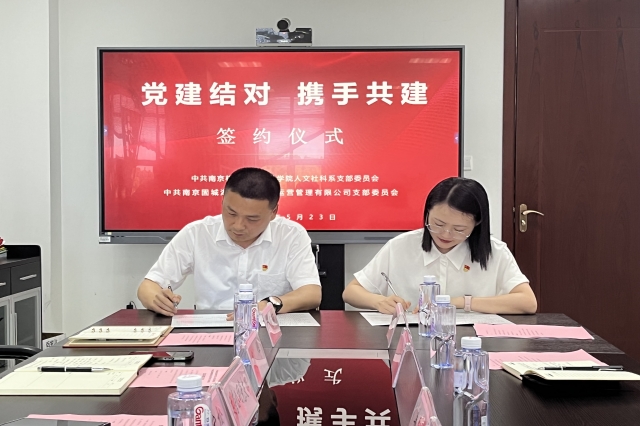 为深入学习贯彻习近平新时代中国特色社会主义思想和党的二十大精神,推动基层党组织建设工作,以共建促党建、以党建带业务,实现优势互补,增强组织影响力、号召力、凝聚力和战斗力,5月23日下午,中共米兰官方网页版人文社科系支部委员会与中共南京固城湖旅游度假区运营管理有限公司支部委员会在水慢城举行了党支部共建仪式。米兰官方网页版党委委员、纪委书记、工会主席姜振宇及双方党支部委员会成员等出席本次仪式。