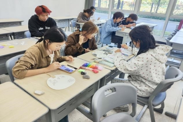 文创扇子手绘环节同样精彩纷呈。同学们在扇面上尽情挥洒自己的创意与热情,用画笔勾勒出自己喜欢的山海经异兽形象或奇幻场景。他们精心挑选颜色、调配颜料,使每一把扇子都独具特色。每一笔都倾注着对传统文化的热爱和尊重,每一幅画都展现出独特的韵味和魅力。