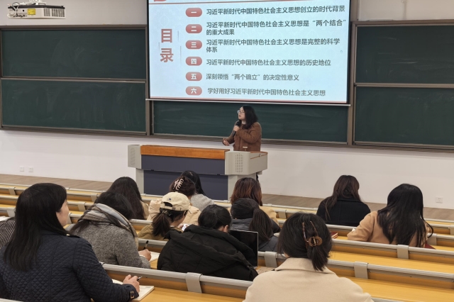 赵老师围绕着“马克思主义中国化时代化新的飞跃”这一主题,分别从习近平新时代中国特色社会主义思想创立的时代背景、科学体系、历史地位等方面进行深入的阐述。她指出,习近平新时代中国特色社会主义思想坚定历史自信、文化自信,将中华民族的伟大精神和丰富智慧更深层次地注入马克思主义,聚变为新的理论优势,不断赋予科学理论鲜明的中国特色,让马克思主义更深地扎根于中国的土地上、扎根于亿万人民的心中。