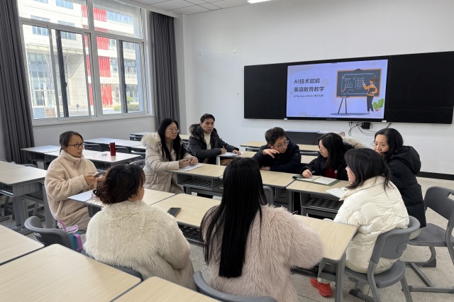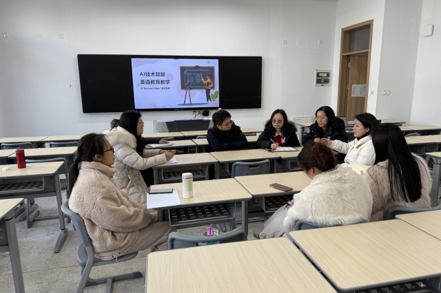 在研讨环节,教研室成员们围绕AI技术在英语教学中的应用展开了热烈讨论。老师们分享了各自在教学实践中使用AI工具的经验,如利用智能语音识别软件纠正发音、借助AI驱动的学习平台进行个性化学习等。大家一致认为,AI技术能够为学生提供更丰富、更个性化的学习资源,同时也为教师的教学设计和课堂管理提供了有力支持。随后,会议将焦点转向即将参加江苏省口语技能竞赛的学生。教研室成员们结合竞赛要求和学生实际情况,提出了针对性的建议。老师们强调,口语竞赛不仅是语言能力的展示,更是思维和表达的综合体现。参赛学生需要在发音准确性、流利度、词汇运用以及跨文化交际能力等方面全面提升。为此,老师们建议学生充分利用AI口语练习工具,进行模拟对话和即时反馈,以增强自信心和应变能力。