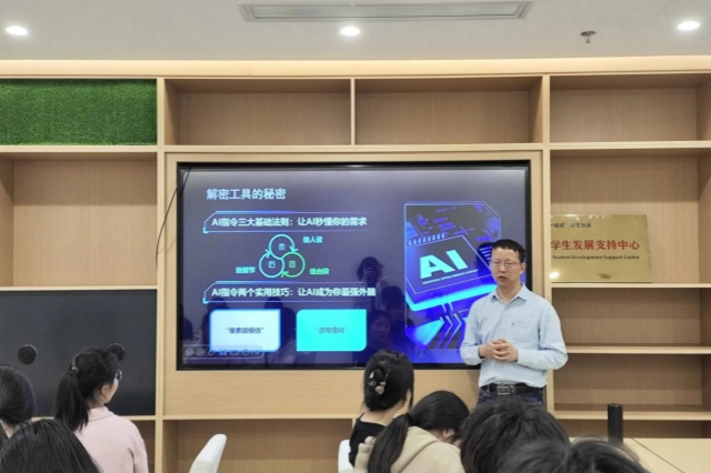讲座围绕五个核心模块展开。首先,宋超老师以“你懂AI吗?”为切入点,强调了AI工具在现代求职中的重要性。他详细介绍了AI指令的三大基础法则和两个实用技巧,指导学生如何利用AI工具优化简历、精准匹配岗位需求,成为自己的“求职专家”。