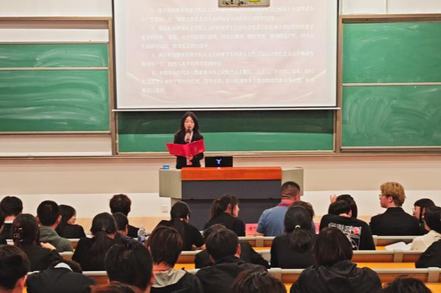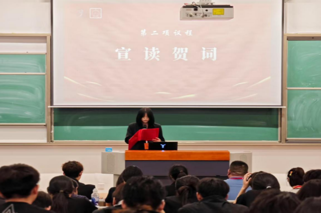 人文社科系团委副书记徐瑞雪宣读贺词,她指出,过去一年人文社科系学生会多方面成果丰硕,充分展现了青年学生的担当与活力。她呼吁全体学生代表以此次大会为契机,继续发扬“团结、奋进、务实、创新”的精神,牢记青春使命,勇担时代责任,贡献更多青春力量。