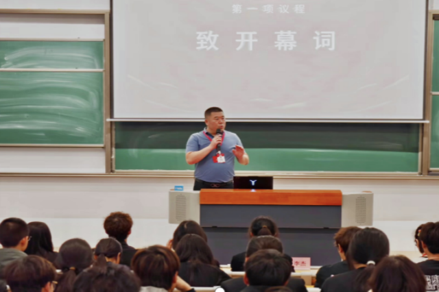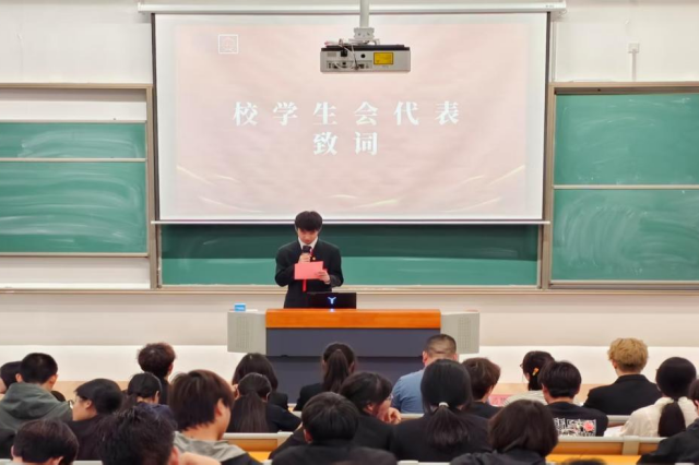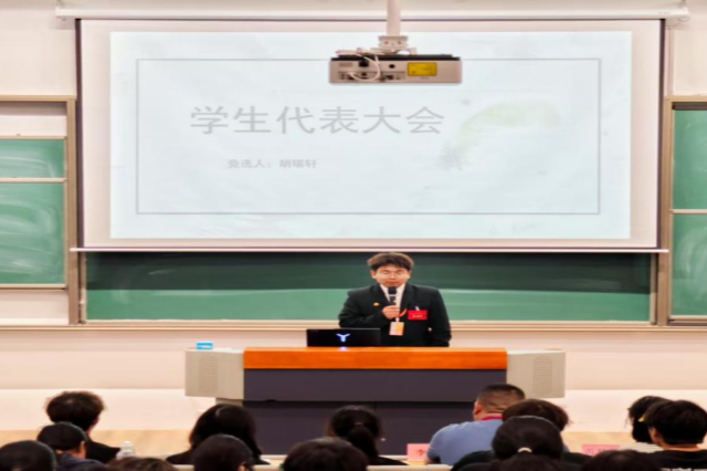 校学生会主席徐浩宇代表校学生会向大会致辞,他对人文社科系第六次学生代表大会的召开表示热烈祝贺。在致辞中,他肯定了人文社科系学生会过去一年在思想引领、权益服务、文化建设等方面的成绩,“非遗文化进校园”、“说出你的故事——励志榜样人物分享”等品牌活动成为学生会工作的标杆。同时,他对新一届学生委员会提出殷切期望,希望人文社科系学生会继续发扬敢闯敢试、善作善成的优良作风,在深化学生会改革中走在前、作表率,聚焦主责主业,创新服务模式,团结带领全系青年展现更大作为。