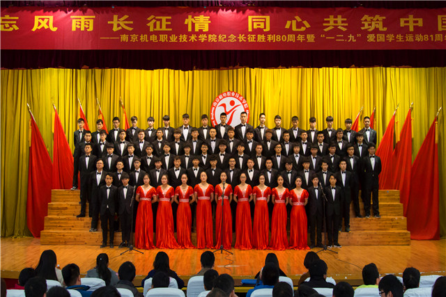 本次比赛在机电之声合唱团、学生管理工作团队的《在灿烂的阳光下》歌声中拉开了帷幕,师生同台,共抒爱国情,生动形象地表现了对祖国母亲深挚的感情和美好的祝愿。信息工程系深情地演唱了«映山红»、«送你一枚小弹壳»,那优美的旋律,表达了对红军的热爱和对英雄的崇敬。电子工程系热情洋溢的带来了«我们走在大路上»、«打靶归来»,体现了充满豪迈乐观的时代精神和革命浪漫主义情怀。机械工程系以满腔的豪情演唱了«中国,中国鲜红的太阳永不落»、«保卫黄河»,铿锵有力的声音感染了在场的所有观众,豪迈的歌声将赛场气氛推向了高潮。自动化工程系演唱《祖国不会忘记》、《太行山上》,歌颂了祖国大地上用血书写新中国历史的那种精神和意志,唱出了所有为共和国默默奉献的人的心声。人文社科系演唱了《映山红》、《强军战歌》,完美呈现了勇敢的国土捍卫者的光辉典范。嘹亮的号角是当代青年学生满怀信心迈向未来的庄严宣示,最后中职注册171班带来了爱国诗朗诵《那年,那月》。
