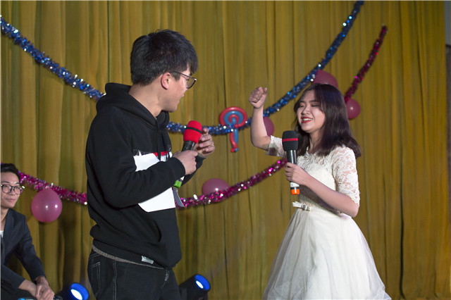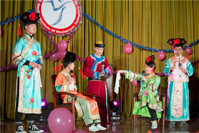 过去的一年里,有辛酸,也有欢乐,过去的一年里,有付出,也有回报。为了告别已经过去的一年,一首《过得好吗》拉开了晚会的序幕。而后的一段蒙古舞蹈《奔腾》让我们见识到了大草原“天苍苍,野茫茫,风吹草地见牛羊”的美丽画面。人文社科系的小品《甄嬛后传》成功地调动了现场气氛。欢乐过后,是不可或缺的福利,特别节目“财神到”给我们送来了新年的礼物,引来全场的小高潮。送礼结束后,串烧歌曲《给我一个吻》把会场里的心全都紧密的串连在一起,让我们感受到机电的阵阵暖意。