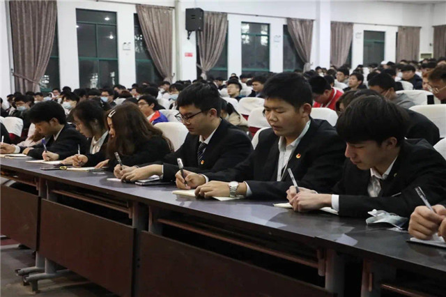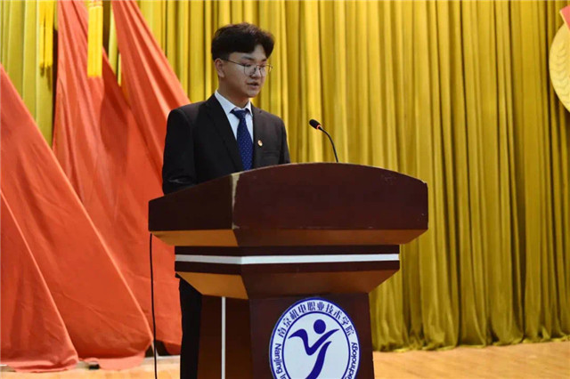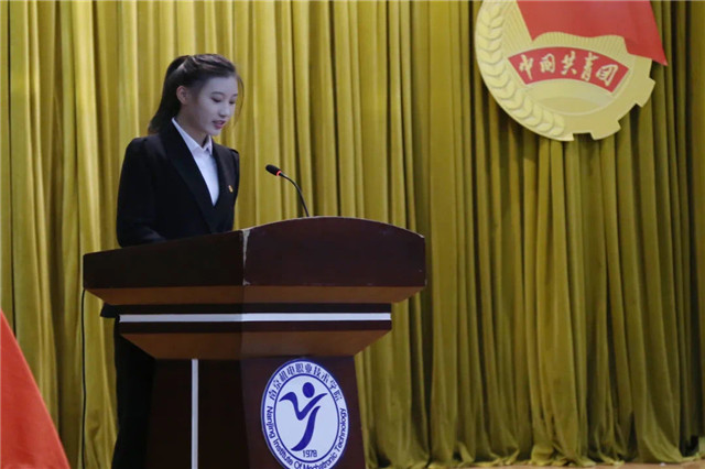 会上,全体院系团学干部在学生团委副书记孙佳怡的带领下重温了入团誓词,通过高昂的集体宣誓活动,展现出我院团学干部争做一名合格的学生干部的毅力和决心。