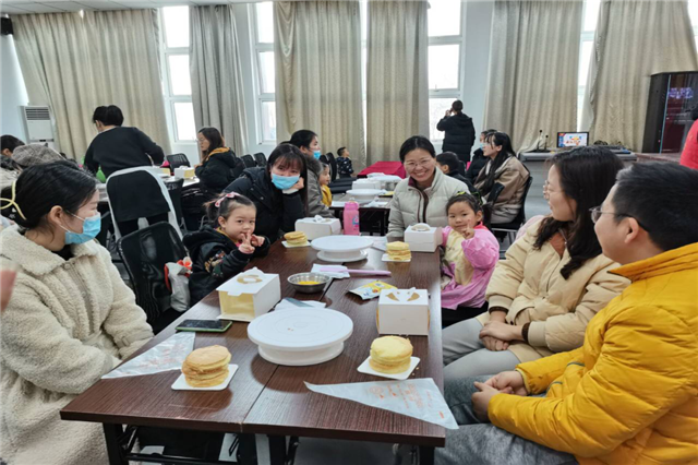 我院志愿者配合现场工作人员按照需求布置场地,现场指导参与人员进行扫码领取互动任务。活动开始,志愿者和现场工作人员对家长进行了蛋糕制作的简单介绍,家长和孩子们需要共同制作蛋糕。