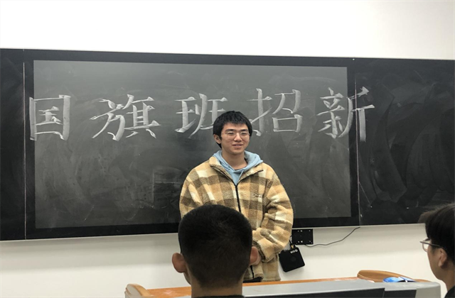 21级新生们根据抽签顺序轮流上台进行自我介绍,各展所长——有人因为家中祖辈三代参军,从小受家庭氛围熏陶,加入国旗班的想法在心中萌芽;有人因为高中便是国旗护卫队中的一员,进入大学也想让这一情怀激荡自己的奋进之路;有人巾帼不让须眉,被军人飒爽的英姿折服后,想进入国旗班奉献自己的一份力量......