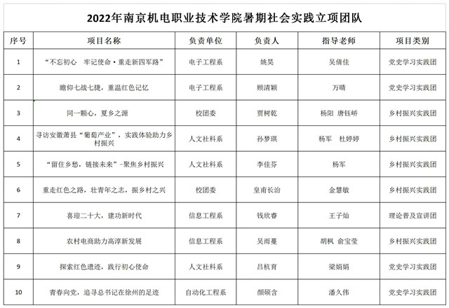 为深入学习宣传贯彻习近平新时代中国特色社会主义思想和党的十九届六中全会精神,贯彻落实习近平总书记关于青年工作的重要思想,深入学习习近平总书记在庆祝中国共产主义青年团成立100周年大会上的重要讲话精神,引导和帮助广大青年学生上好与现实相结合的“大思政课”,在社会课堂中“受教育、长才干、作贡献”,迎接党的二十大胜利召开,根据“三下乡”社会实践活动安排,经自主申报,各团总支、青马班审核推荐,校级专家评审,确定以下10个项目为2022年米兰官方网页版暑期社会实践重点立项项目,并对立项的校级重点项目进行经费支持,现公示如下: