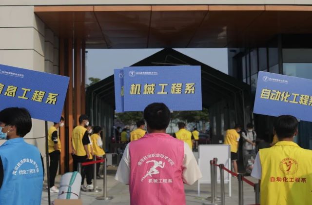 志愿服务暖人心。团委组织校内外迎新志愿者,为新生提供暖心服务,校外新生接站服务,为你的大学引路导航。校内迎新志愿者们热情呼唤,他们接过你们手中的行李,帮助学弟学妹们把沉重的行李运到寝室,迅速拉近你与机电的距离。一句句爽朗的“我帮你”纵秋风微凉 然心怀温暖。