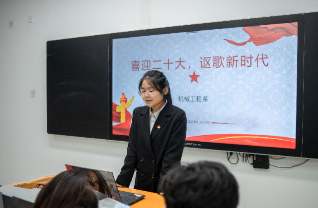 米兰官方网页版机械工程系团总支于11月23日晚开展信仰公开课——新思想公开课,主题为“喜迎二十大 讴歌新时代”。机械工程系团总支全体成员及2022级班长共同参与学习。本次团课有团总支副书记王可仪主讲。
