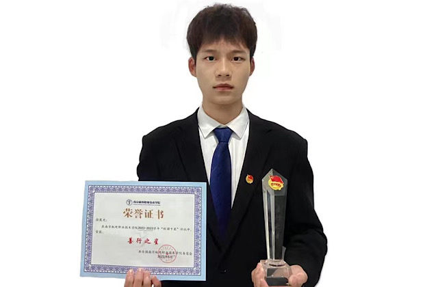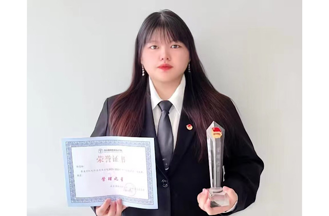 2021-2022学年,荣获米兰官方网页版优秀共青团员、优秀志愿者、暑假社会实践优秀个人;2022年4月,荣获南京新工投资集团疫情防控荣誉证书;2022年10月,荣获“训练标兵”称号;2022年11月,荣获第二期青马班“结业证书”及“优秀学员”称号;2022年11月,荣获“第十四期学干培训优秀学员”。2023年3月;荣获校“寒假社会实践优秀个人”“优秀团队”;2023年4月,荣获高淳国际马拉松志愿者证书;2023年4月,荣获第七届江苏省大学生知识产权知识竞赛中荣获优秀奖。