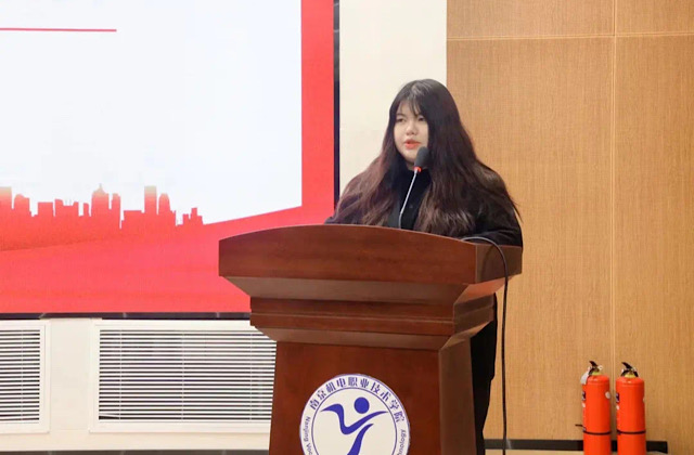团总支副书记代表顾清颖回顾了过去一年的工作成果,并对学生组织的所有成员表达了衷心的感谢。她提到当好服务角色,发扬奉献精神是学生干部担负的首要职责,学生干部要自觉学习理论,积极向党组织靠拢;学习努力,成绩优异;在工作面前要有高度的责任感、积极进取的精神状态和较好的自我教育、自我管理、自我服务的能力;在生活中以身作则,谦和宽容,能在各个方面起到模范带头作用。