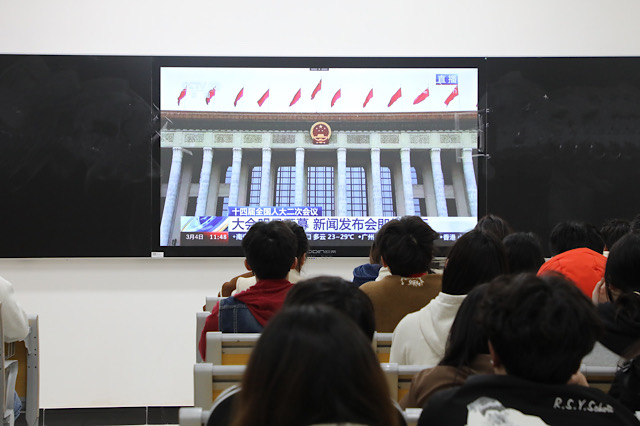 在精心策划和组织下,同学们齐聚一堂,共同观看了《十四届全国人大二次会议》的精彩直播以及一系列精选的新闻周刊片段。同学们聚精会神地观看,通过视频和现场采访等多种形式,了解了国内外的重要事件和社会动态,涵盖了政治、经济、文化等多个领域,全面认识国家的发展状况和社会进步,深刻感受到了两会作为国家政治生活的重要组成部分所承载的使命与担当