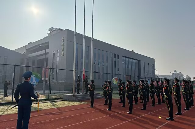 在万众瞩目下,国旗班迈着整齐的步伐,缓缓步入会场。他们的眼神坚定,步伐铿锵,展现出军人的风采与学校的荣耀。