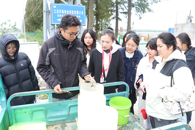 人文社科系前往和丰园生态水产养殖专业合作社,聚焦如何利用电子商务平台助力乡村振兴。通过参观合作社与中国农村专业技术协会共建的江苏高淳“科技小院”,了解“虾蟹共作”新技术,体验“智慧e+管理系统”,了解创新销售方式,在同学们心中播下新农人的种子。