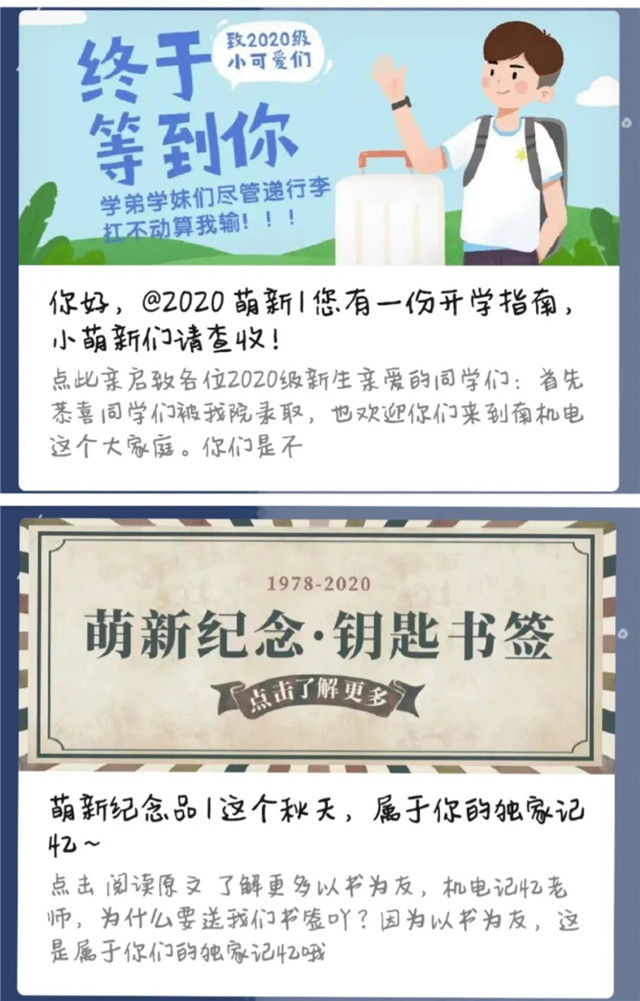 亲爱的萌新们,还记得你与团团的初次相识吗?或许是在暑期的某一通咨询电话,或许是在公众号的一次评论,又或许是在QQ、微信的聊天过程中。在这不平凡的一年,你们跨越了一个最特殊的假期,见证岁月的你们是否想与我们一起陪伴更多“00后”的青春。加入我们,成为南京机电的代言人。