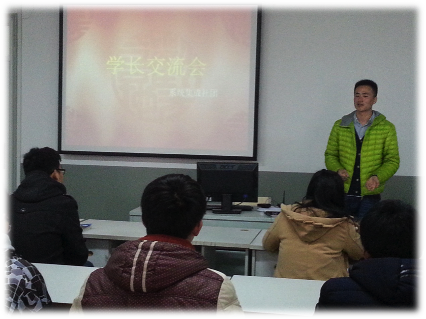 3月15日,信息工程系系统集成社团迎来了我院13届网络系统管理专业毕业生赵文和储夫明同学,这两位学长也是从我们系统集成社团走出去的学生。当年下午组织了社团学生和学长们进行了交流。