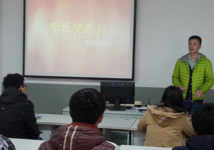 3月15日,信息工程系系统集成社团迎来了我院13届网络系统管理专业毕业生赵文和储夫明同学,这两位学长也是从我们系统集成社团走出去的学生。当天下午组织了社团学生和学长们进行了交流。