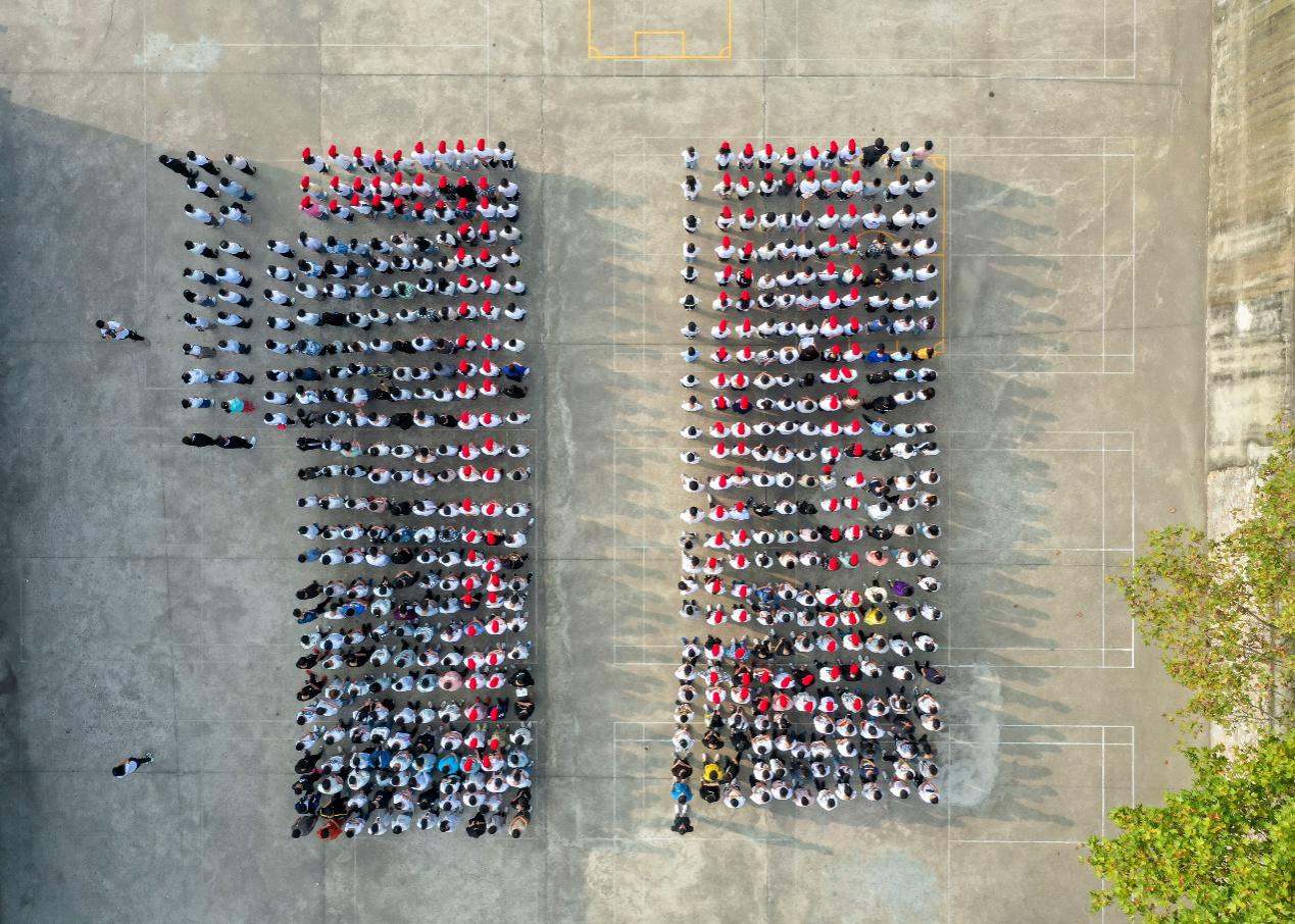 清晨七点,迎着初升的朝阳,米兰官方网页版650余名师生满怀崇敬之情聚集在操场,153名同学在队伍中用小红帽摆出“70”字样。