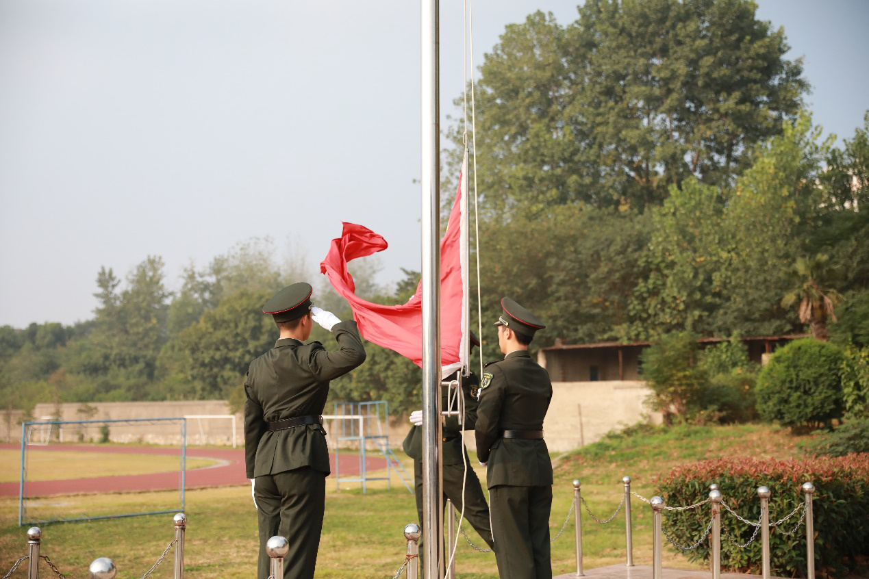 七点四十五分,13名国旗班的队员整齐列队,在《歌唱祖国》的雄壮乐曲声中,一名持旗手肩扛国旗,在国旗班的护卫下走向升旗台。随后,伴着庄严的《义勇军进行曲》,升旗手奋力挥臂,将国旗抛向空中。鲜艳的五星红旗冉冉升起,信息工程系全体师生仰望五星红旗,庄严肃立,高唱国歌。