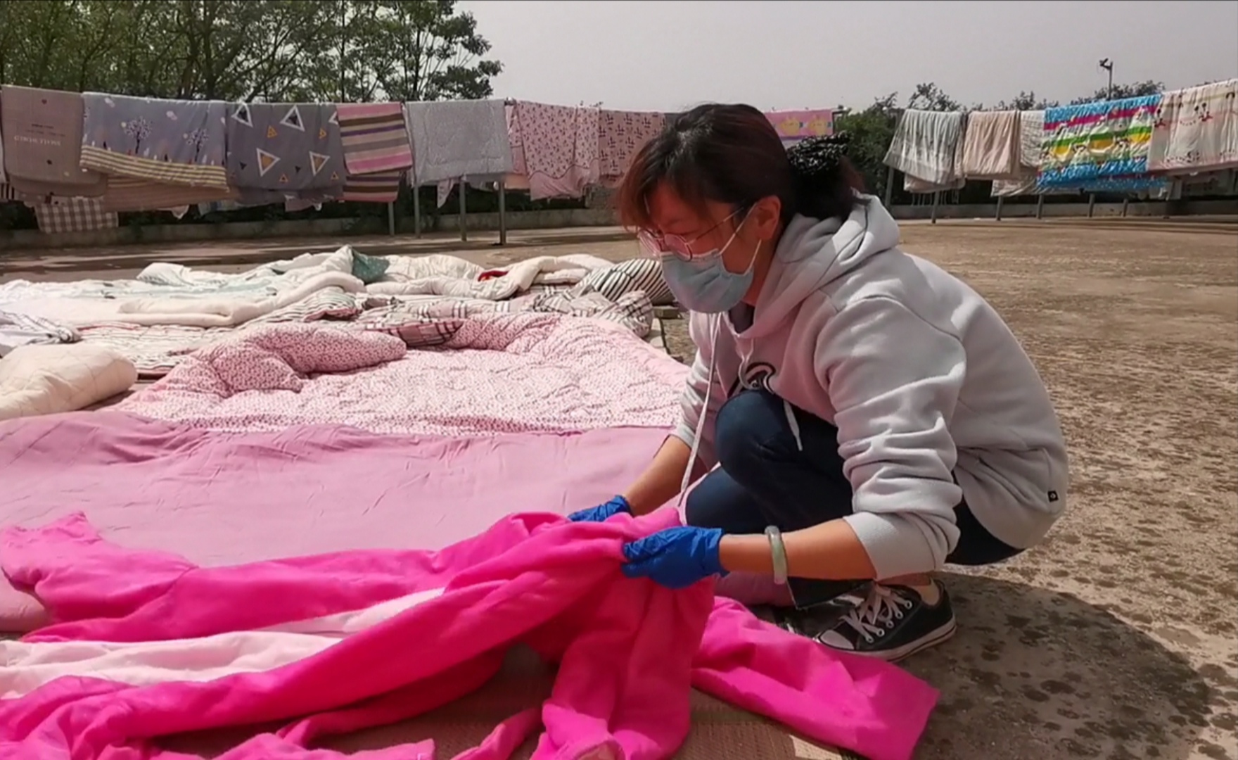 一上午的时间,在大家忙碌的身影中一晃而过,等到被子充分沐浴过阳光,大家又开始收拾被子,整理床铺,晒过的被子变得蓬松柔软,细心的老师们,用床单裹住了被子,防止蒙尘,留住暖阳。