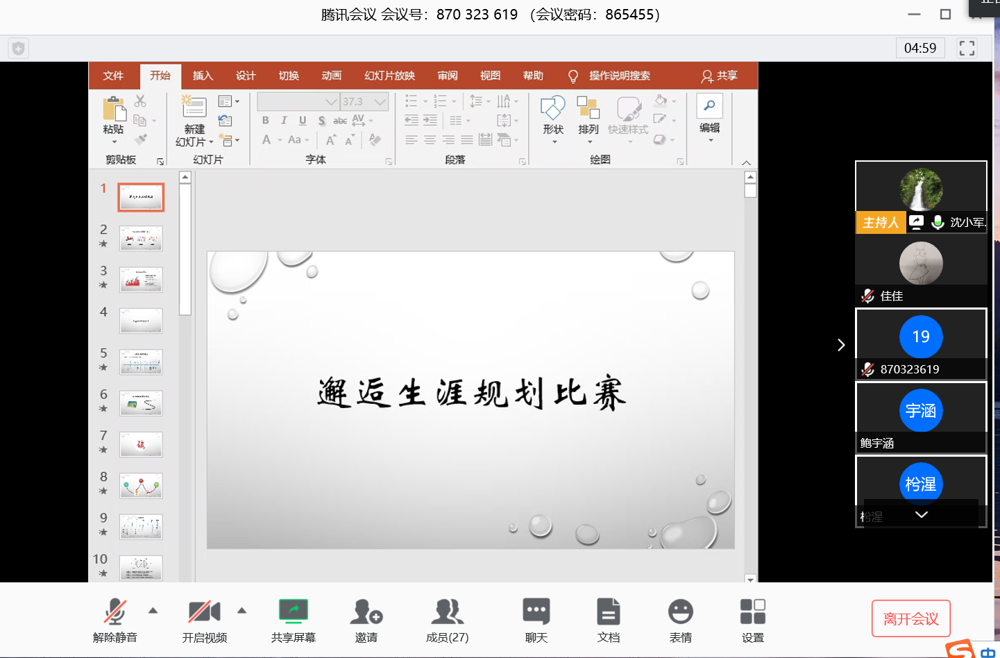 经过了一个半月的线上指导,同学们的规划书已经初步成形,随着PPT的进一步完善,5月15日,系部以腾讯会议的形式,组织了同学们进行半决赛。