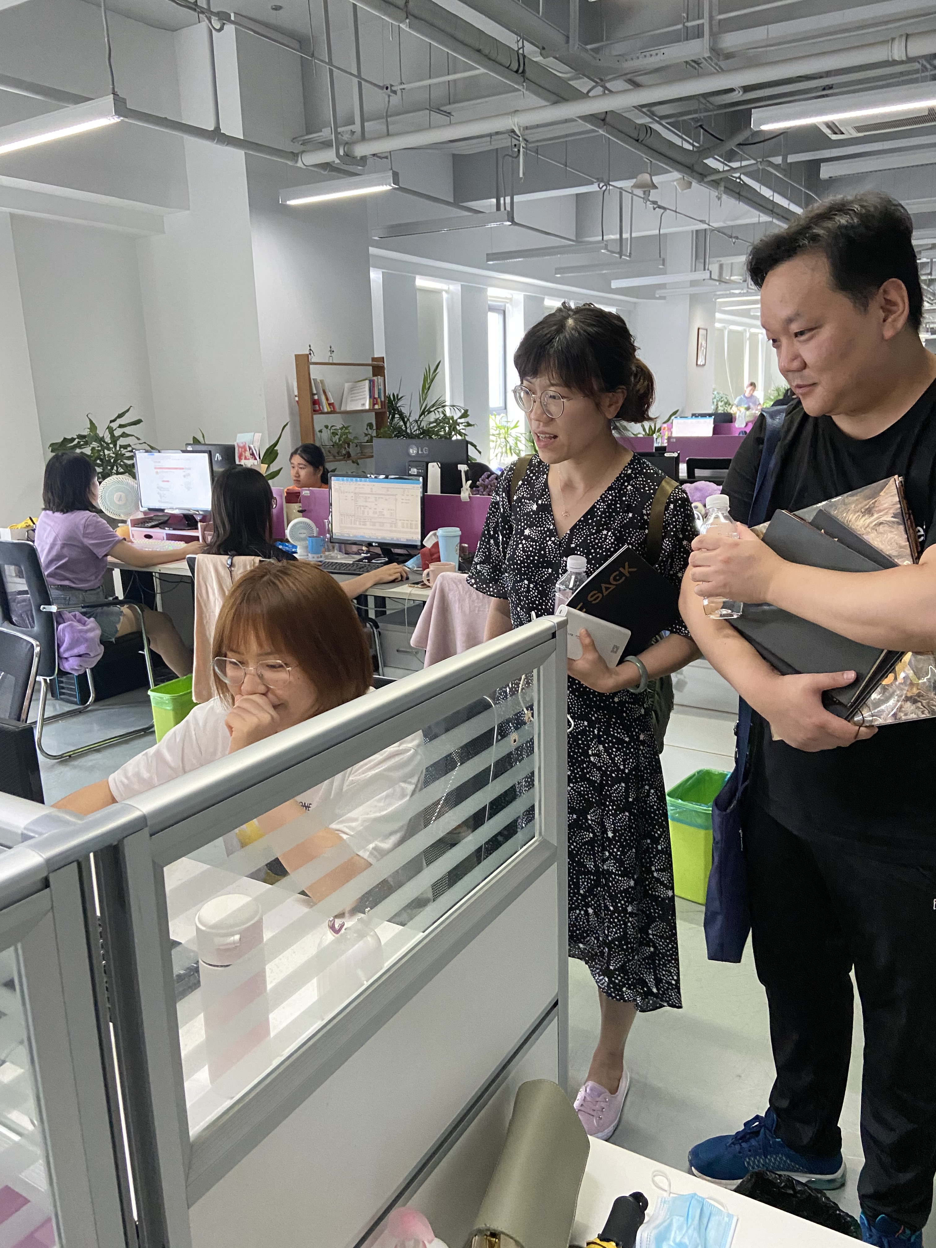 孙经理介绍了企业的发展历程、经营理念和业务情况,王主任详细介绍了我系的专业情况,学生人数,以及目前开展校企合作的几种模式,孙经理向大家介绍了目前对岗位人才的需求情况,校企双方就以往的在顶岗实习、项目合作上积累的经验进行了交流,初步达成了合作意向。随后,在孙经理的陪伴下,老师们参观了行狐的工作环境,并与当日在岗的实习学生进行了沟通,了解学生的实习情况。
