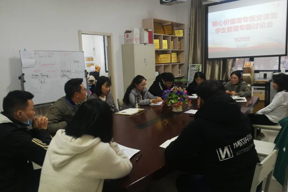 按照信息工程系党支部的党课学习教育计划安排,在学院搬迁前夕的关键时期,11月23日下午,信息工程系党支部组织全体教职工在党员活动室开展了以“严谨治教,立德树人,做社会主义核心价值观的忠实践行者”为主题的党课教育活动,党课由支部书记胡枫主讲。