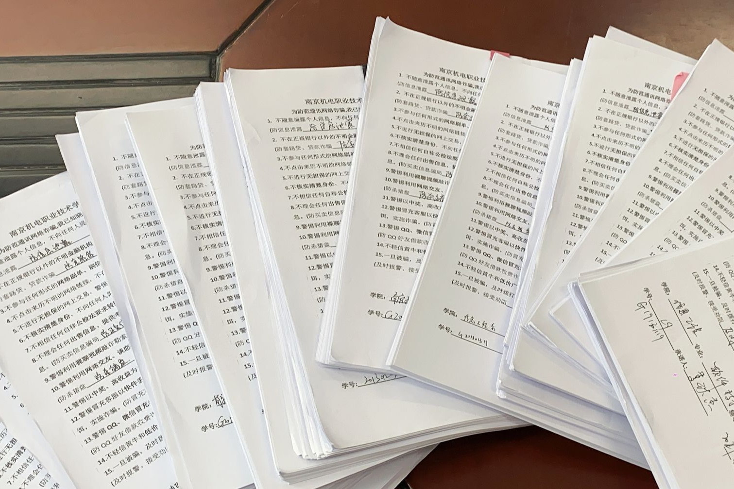 我系积极召开专题主题班会、专题讲座等活动。网络诈骗的形式主要有:冒充熟人诈骗、招工诈骗、中奖诈骗、钓鱼诈骗、征婚诈骗六种类型。班会中各班以日常工作和生活中的犯罪案例,细致地向同学们讲述了大学生活中可能会接触、遇见的校园贷、电信诈骗、网络诈骗等侵害大学生社会信用、人身安全、财产安全等方面违法犯罪问题。电信网络诈骗主要通过一些购物网站发布虚假销售信息,以价格低、获取渠道复杂,通过第三方支付平台为托词要求购物者汇款。辅导员老师们提醒同学们切忌贪图小恩小惠;切忌用生日等简单数字设置银行卡密码;切忌用短信向陌生人回复自己的身份信息;切忌在交友软件上简单地进行汇款交易;切忌买卖银行卡等,帮助同学们辨识和认清这些犯罪手段套路背后的真面目,提高同学们的防诈骗能力和自我保护意识。最后,各班同学还签署了防范网络通讯诈骗承诺书。