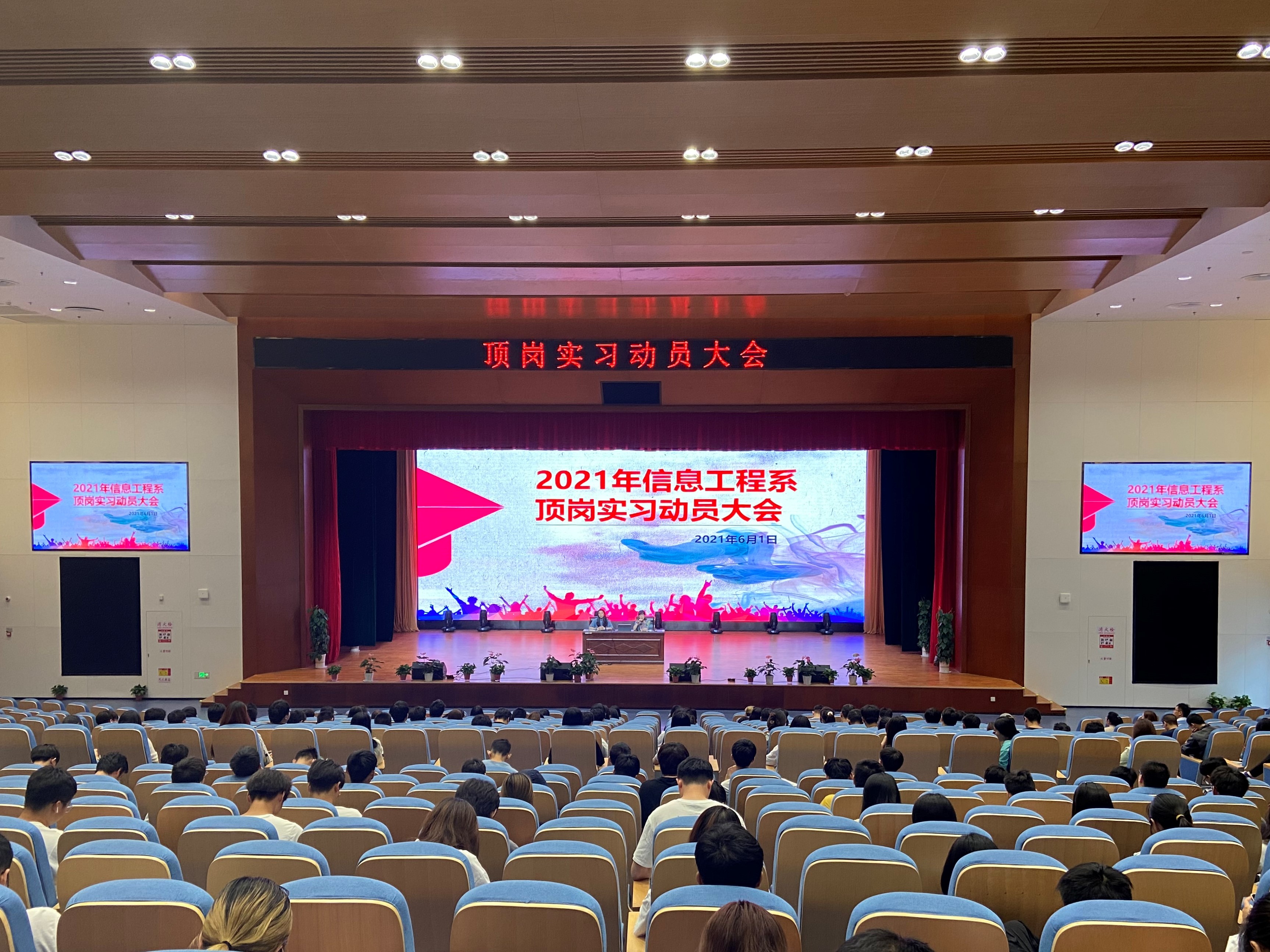 为了进一步完善我系毕业生项岗实习和就业工作,引导学生做好项岗实习的心理准备。2021年6月1日,信息工程系在学校报告厅召开2022届毕业生顶岗实习暨就业动员大会。系主任王玮、系书记胡枫及系副主任刘娴出席了本次大会,全体19级学生和辅导员参加了此次会议。