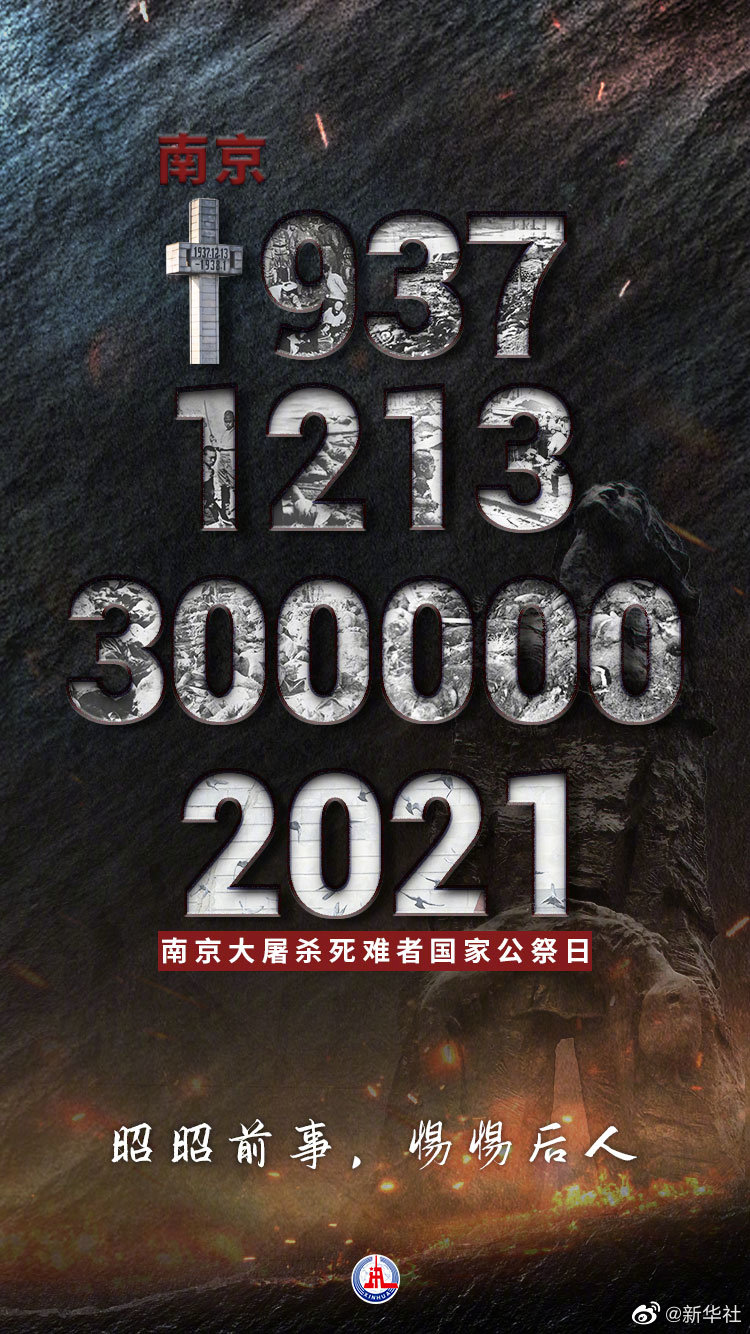 在建党100周年之际,举国上下同悼南京大屠杀死难者,告慰逝者,更警醒国人,历史悲剧决不能重演,中华民族走向伟大复兴的历史脚步不可阻挡。