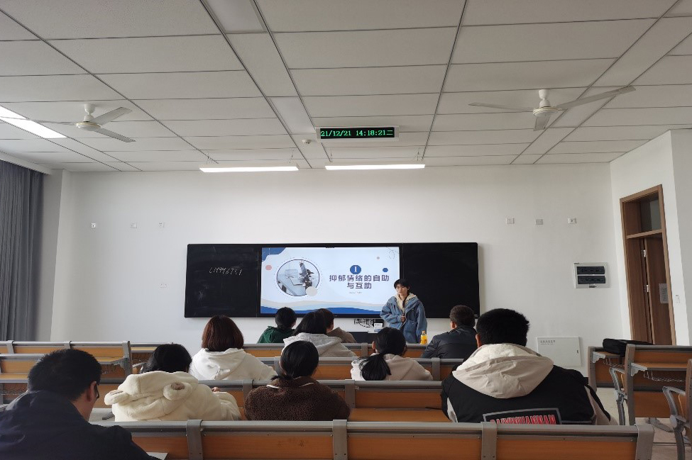 首先,王林林老师讲述此次分享会目的及要求,并指出此次活动的意义所在。然后由分享者柳子怡同学进行此次活动分享,她对心理沙龙活动进行中心概括,主要围绕“抑郁情绪的自助与互助”、“战胜考虑焦虑,考试轻松惬意”、“逃离‘容貌焦虑’的陷阱”三大主题进行分享,同学们认真聆听,认真记录。最后,朱芷庆对此分享会作最后总结,分享会活动圆满结束。