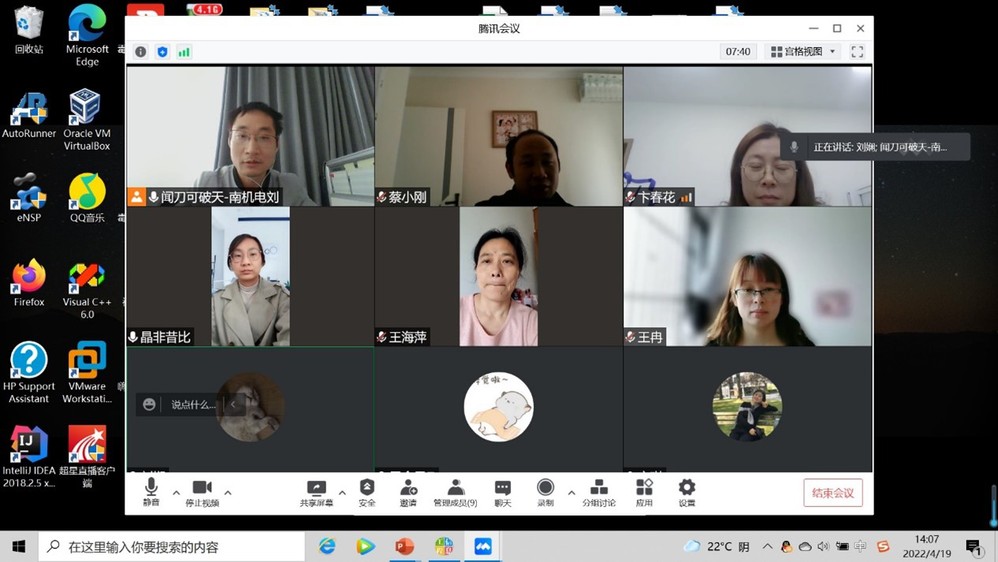 2022年4月19日下午,软件教研室全体老师再次相聚于云端,在教学副主任刘娴的带领下,老师们一起观看学习了全国职业院校技能大赛教学能力比赛经验分享会。