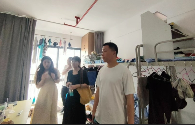 胡枫书记与同学们进行了亲切交流,走进学生宿舍详细询问了他们的工作情况、生活情况,并鼓励同学们工作需认真,时刻注意安全,勉励同学们用心去工作,不断夯实自身,圆满完成岗位实习课程。