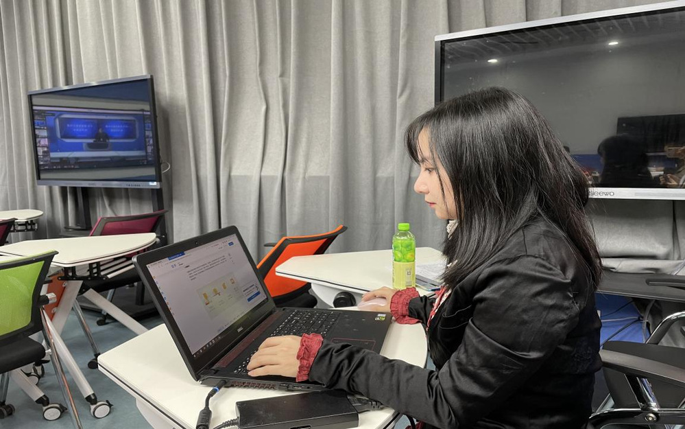 第三部分为曹锦雯老师的无学生课堂授课展示,曹老师的教学形式是通过对学生作业的评价讲授课程知识点,并通过对平台系统的操作示范总结要点。
