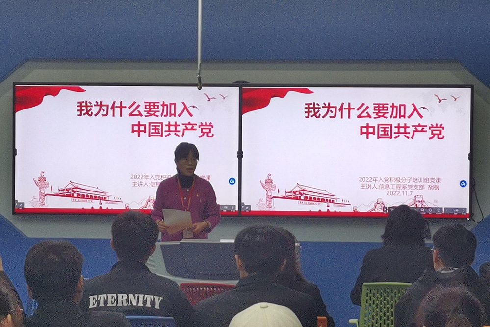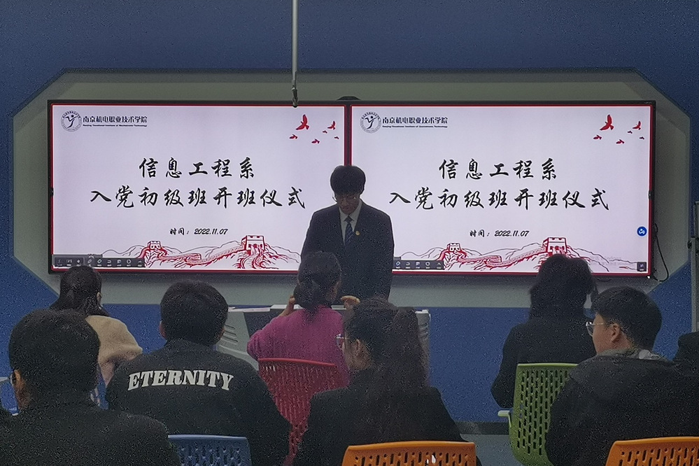 为切实做好入党积极分子的培养教育工作,提高入党积极分子的思想政治素质,端正入党动机,切实把好党员队伍的“入口关”和“质量关”, 11月7日中午在博学楼411,米兰官方网页版信息工程系入党积极分子初级培训班正式开班。信息工程系党支部书记胡枫老师、信息工程系党支部组织委员俞宝莹老师、信息工程系党支部纪检委员刘娴老师、信息工程系党支部宣传委员卞志勇老师出席开班仪式、系部各班级入党积极分子参加此次培训,开班仪式由信息工程系团总支秘书长王重重主持。