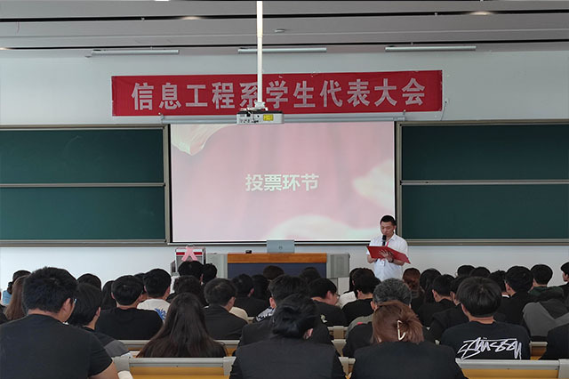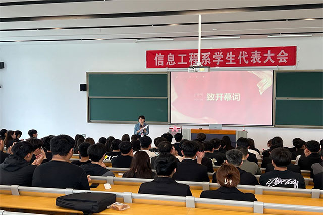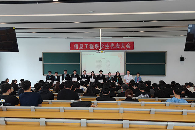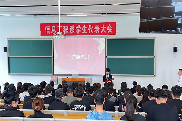 2023年4月18日下午1点,米兰官方网页版信息工程系第四届学生代表大会在善学楼103顺利召开。信息工程系党支部书记胡枫、党支部组织委员兼团总支书记俞宝莹、党支部青年委员兼学生会指导老师郝麒、学工处老师顾窗林、全体辅导员老师及118名学生代表出席了本次大会。大会由学生会指导老师郝麒主持。