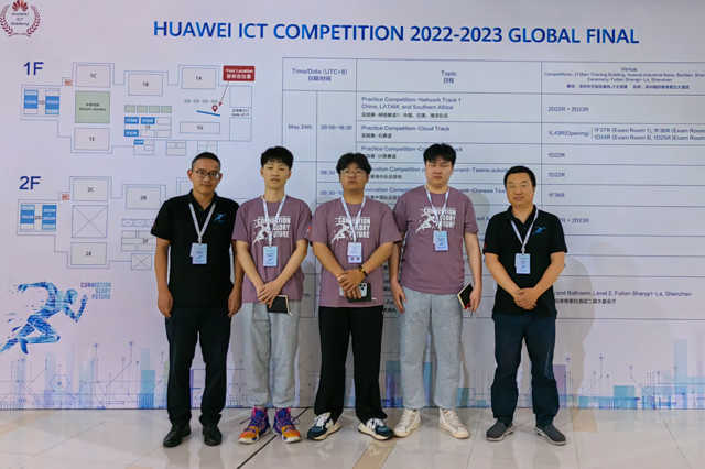 我校参赛的梁旭、毛俊峰、陈洋三名同学在学校各级领导的关心下,经过前期精心备赛,一路披荆斩棘,以江苏省赛区特等奖的成绩进入全国总决赛;以全国总决赛二等奖的成绩闯入全球赛。在全球赛的赛场上,同学们沉着冷静,稳扎稳打,最终获得全球总决赛网络赛道三等奖。