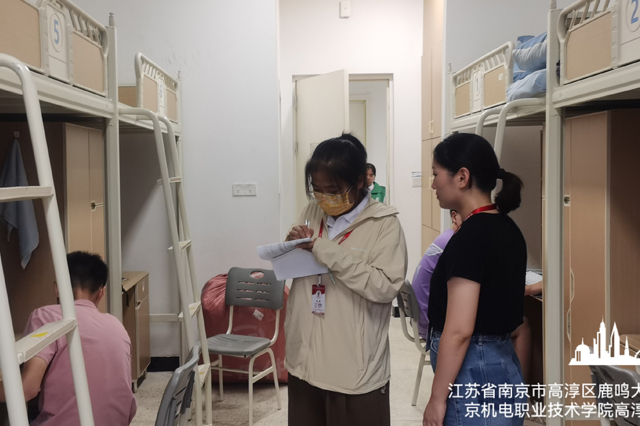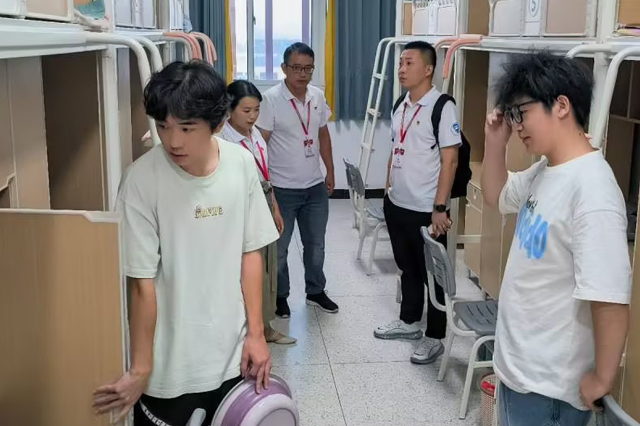 走访中,刘娴副主任对新生表示慰问的同时,还引导大家去了解各自的专业,提前做好学习计划,为大学的学习生活做好准备;胡枫书记倾听了同学们提出的问题,作出了详细的回答,并且针对防诈骗的问题,要求大家提高警惕,保证自己财物的安全;姚小冬主任嘱咐大家要养成良好的作息习惯,共同维护寝室卫生,同时强调大学时光宝贵,尽快调整好个人心态,更好的适应大学生的角色,投入到丰富多彩的大学生活中去,要在实践中提升自我,追求卓越;赵学洪副院长表示,叮嘱大家第一次远离家人一定要照顾好自己,整理好内务,注重个人卫生和宿舍环境卫生,要时刻注意人身财产安全,防盗防诈,调整好心态,合理作息,以饱满的热情投入到南京机电的学习生活中去。