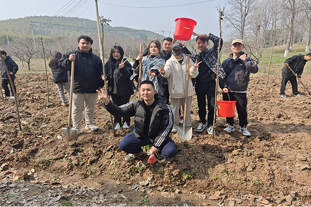 人间最美三月天,春花烂漫展新颜。春天带着绿色的气息向我们走来,春风吹绿了枝头上的嫩芽,吹绿了地上的小草,也吹动了同学们的热情。今年是中国第46个植树节,为弘扬中华传统文化,增强师生的环保意识和生态文明观念,信息工程系师生继续积极响应环保志愿行的号召,再次踏上征途,于312日下午前往高淳游子山开展以“植”此青绿,“树”梦远航为主题的党建带团建植树节活动。此次植树活动,由信息工程系党支部书记胡枫带队,学工干事郝麒、团总支书记沈歆岩、负责心理老师王林林、就业干事陈莉娟、全体辅导员、团学骨干和家庭困难学生共同参与。