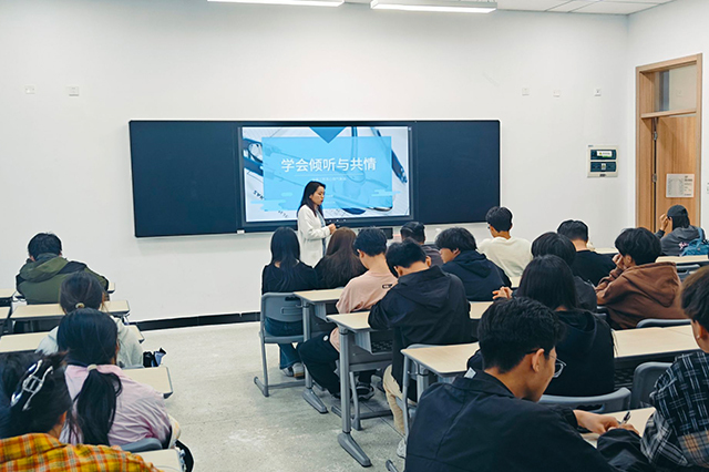 王老师指出,共情又叫同理心换位体验。它既指站在对方的立场设身处地的思考方式,也指一个人用自己的心去感受对方的感受,体验对方的体验。因此,共情不单纯是一种认知或思维方式,而是指包括身体感觉和情感体验在内的针对他人的客观、真切的理解和接纳,它是人际关系的高峰体验。心理委员们要学会运用共情的技巧,去感受同学们的情绪变化,理解他们的困扰和需求,从而提供更加精准的心理支持。培训会上,心理委员们积极互动,分享了自己在倾听与共情方面的心得和体会。同学们表示,通过本次培训,对倾听与共情有了更加深入的认识,也学会了如何在实践中运用这些技能,为同学们提供更加专业的心理支持。