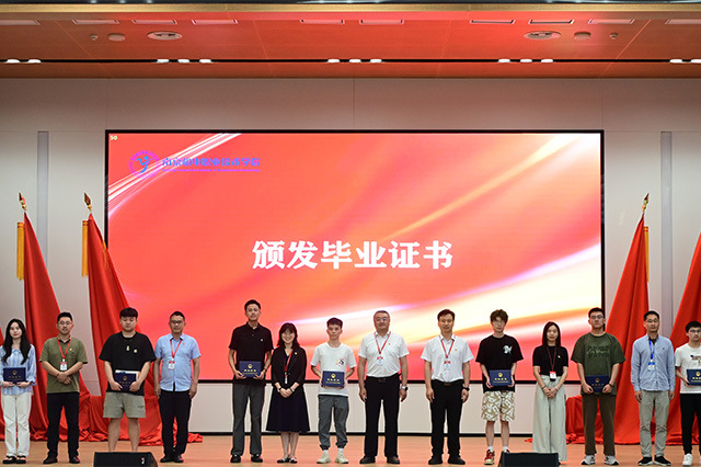 在颁发毕业证书的环节中,学校党委委员副校长刁爱军、信息工程系主任王国珍、党支部书记胡枫等领导亲自上台,为即将步入社会的学子们颁发这一象征着荣誉与责任的证书。毕业生们依次上台,从老师们手中接过属于自己的毕业证书,脸上洋溢着幸福的笑容和自豪的神情。