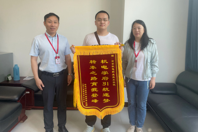 分享会尾声,陈家强同学怀着感恩之情,向母校米兰官方网页版赠送锦旗,锦旗上“机电学府引航逐梦,转本之路育我登峰” 的字样熠熠生辉,饱含着他对母校培育之恩的深切感激。培训处处长周云龙、信息工程系党支部副书记陈雪作为校方代表郑重接受锦旗。周云龙表示,这面锦旗不仅是对学校教育教学工作的肯定,更是一种激励,学校将继续努力,为学生成长成才搭建更好的平台。陈雪也鼓励在场同学以陈家强为榜样,明确目标,努力拼搏,在专转本和未来的职业发展道路上实现自己的理想。