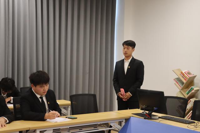 紧接着,学生会副主席兼团委副书记孟佳走上讲台。他以自身在团学工作中的成长经历为切入点,从活动策划的经验积累到团队协作的感悟,分享了在团学岗位上的宝贵心得。发言中,孟佳言辞恳切,着重强调团队凝聚力的重要性,鼓励新一届团学干部以开放包容的心态加强协作,以创新进取的姿态迎接挑战,携手开创信息工程系团委工作的崭新局面。