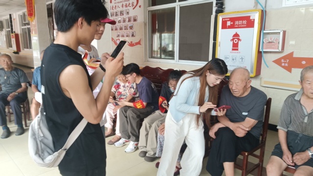 在助老服务上,服务团走进街道服务中心及社区,开展“科技助老 + 防诈宣传”。志愿者一对一教老年人用手机视频通话、线上缴费,结合真实案例讲解反诈知识,现场指导下载国家反诈中心 APP。从生疏互动到老人主动开心合影,细微行动传递温暖,提升老人科技适应力与安全防范意识。
